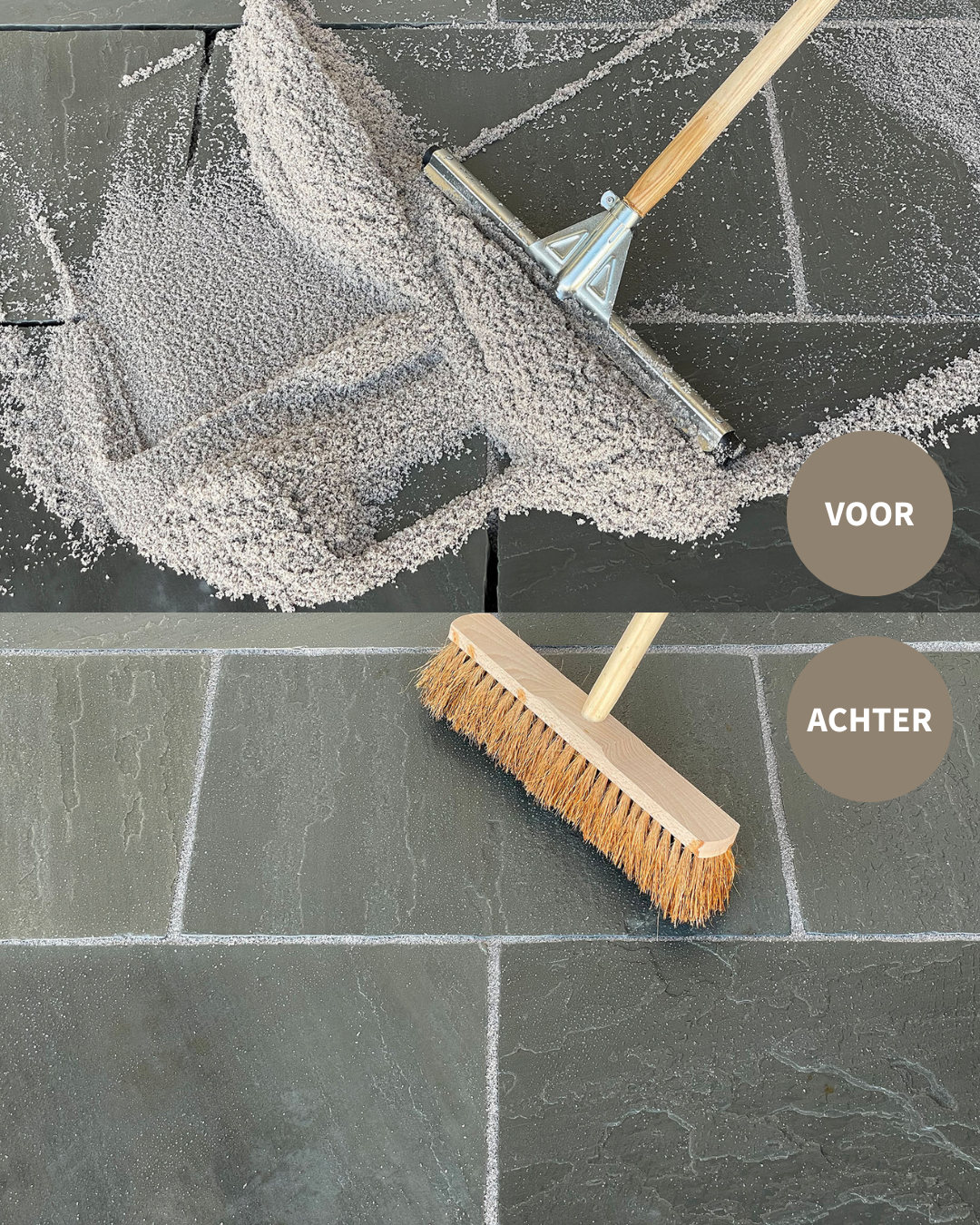 • Waterdoorlatend voegzand: spoelt niet weg en remt onkruidgroei af.